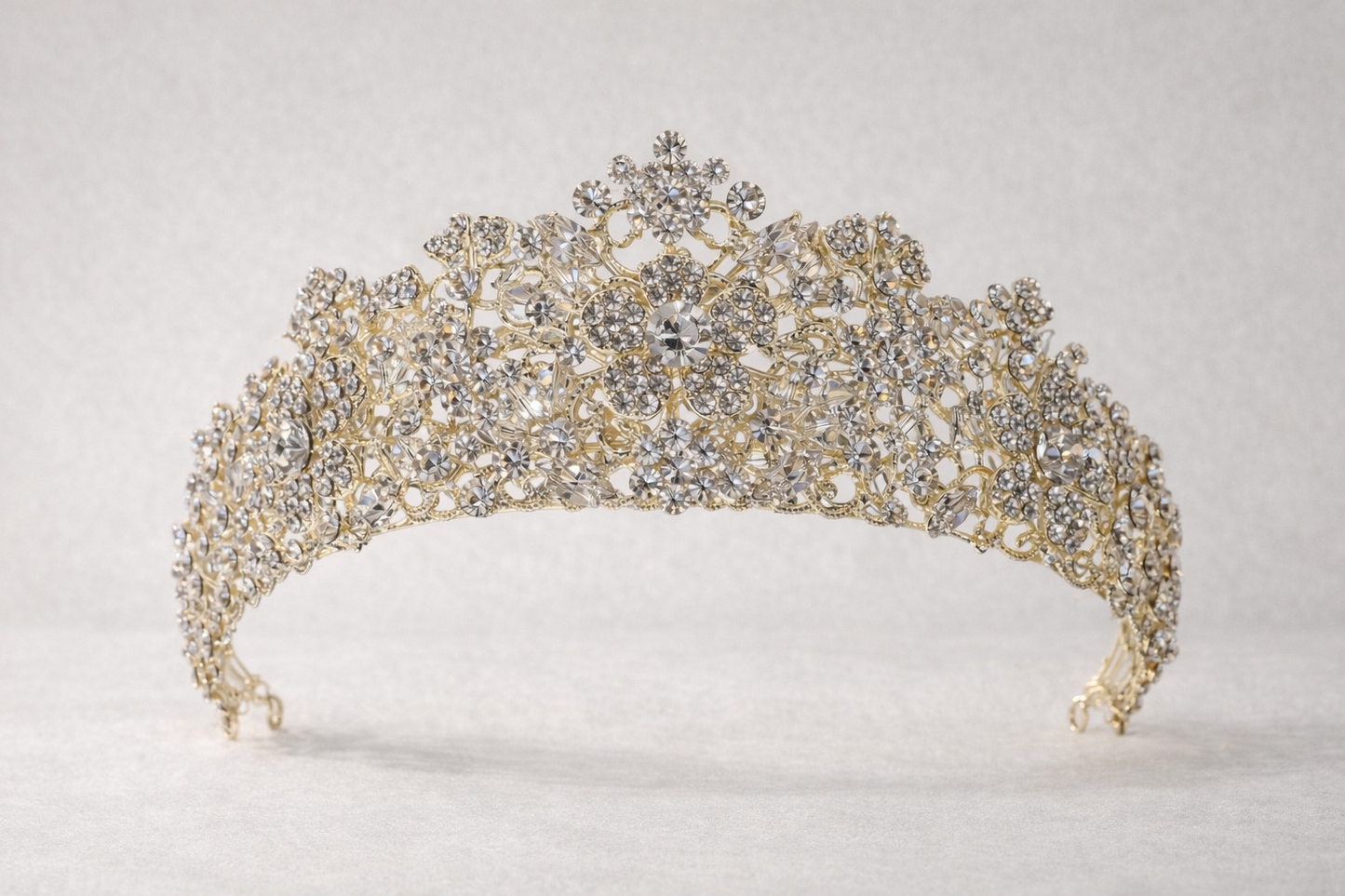 Nada is a refined crown headpiece that combines understated sophistication with luminous detail. Crafted with precision-cut Swarovski crystals, it delivers a polished sparkle suitable for formal occasions and special events. The piece complements our Cristal Earrings for a coordinated look. Choose between silver or gold finishes to match your aesthetic.